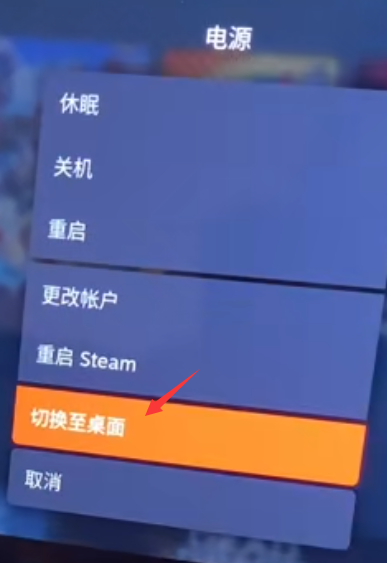 在游戏模式,按下STEAM键 – 电源 – 切换到桌面模式