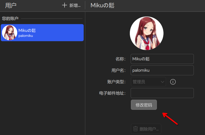 点击 “修改密码” 以设置管理员密码。